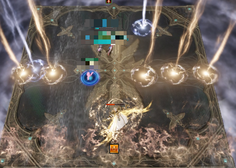 범위 밖은 피해를 입기 때문에 이 안에서 돌면서 파수꾼의 공격을 피하며 고리 구슬을 1줄 2줄 3줄 순서대로 파괴해야 합니다.